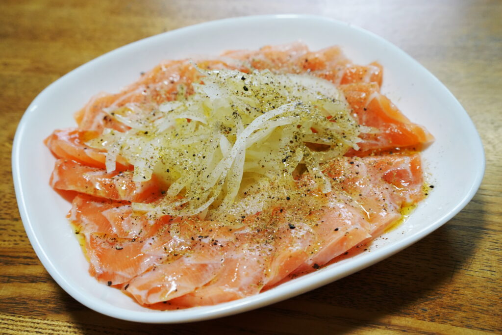 残りの半分を、カルパッチョにして、今日いただいた。